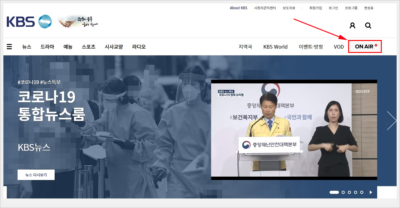로그인 없이 KBS 온에어 실시간 방송보는 방법